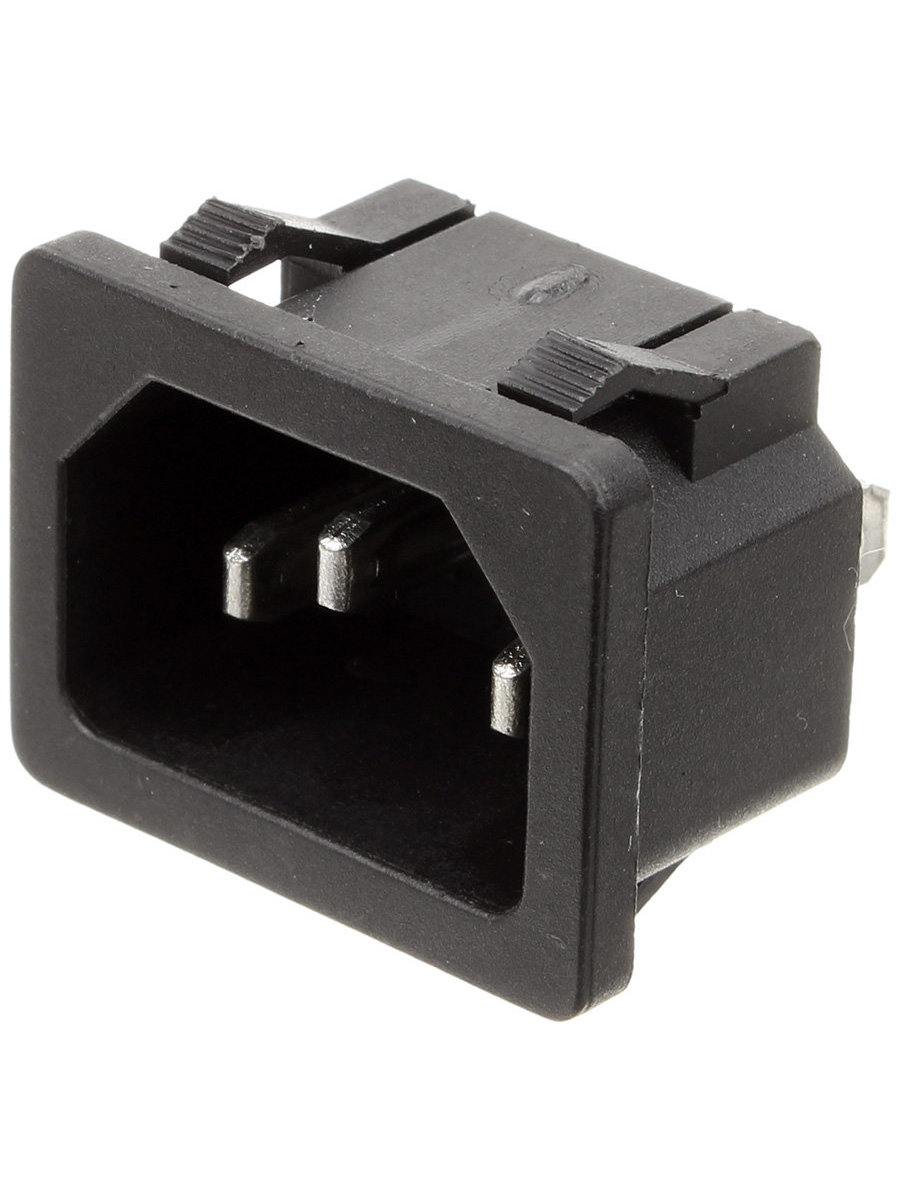 Сетевой разъем на корпус вилка тип C14, Разъем питания серии AC, вилка 3-х полюсная, крепление на защелках, 10А 250В