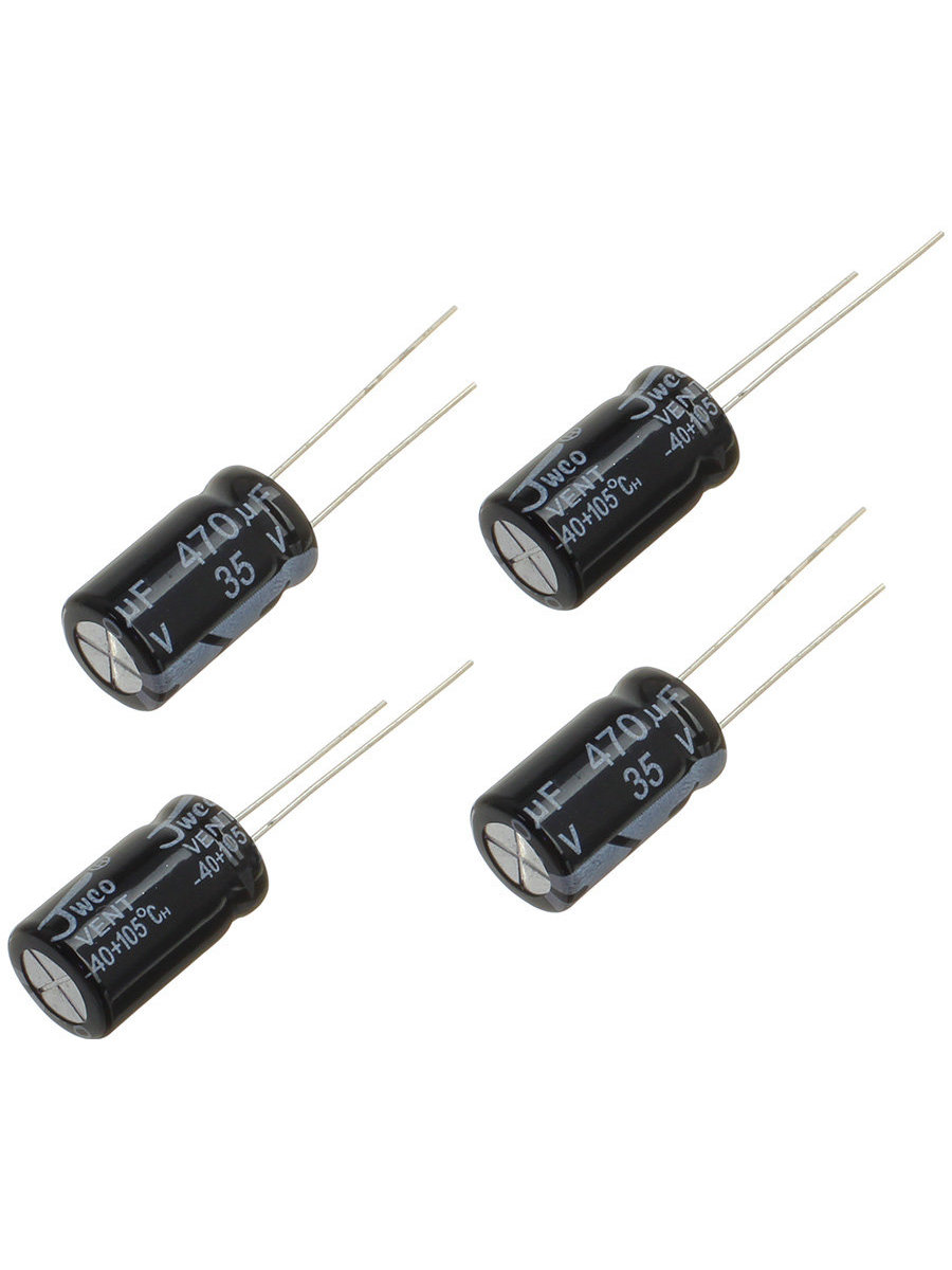 Конденсатор электролитический 470мкФ 35В, 10*17мм 105С, Jwco KM471M1VBKJ1017VBK 520мА 2000час (упаковка 4шт)