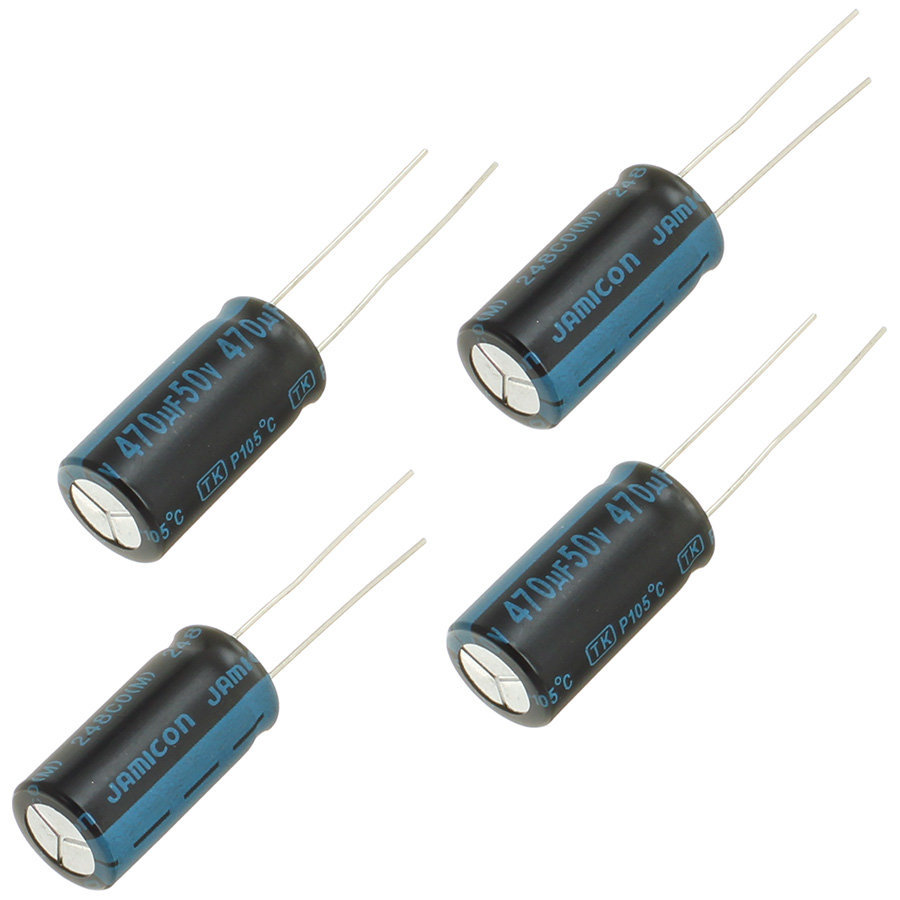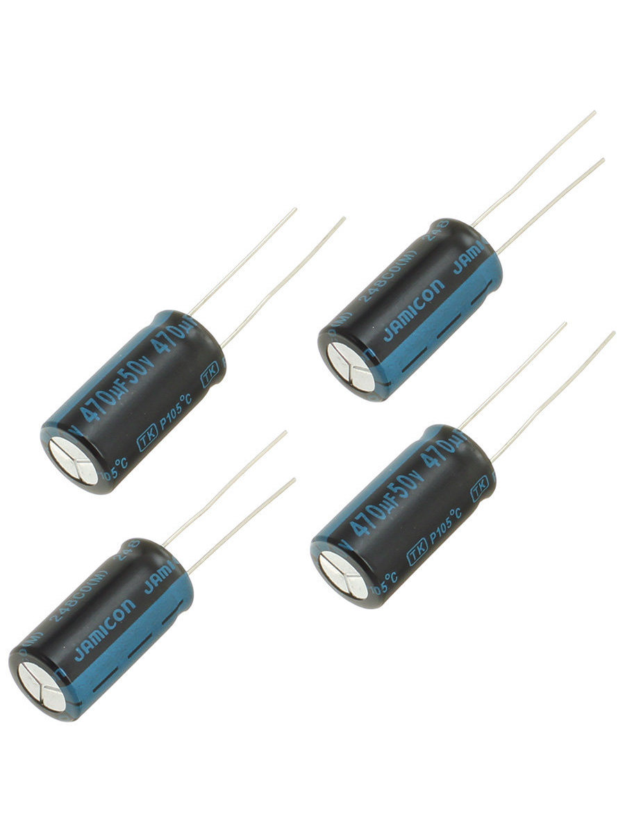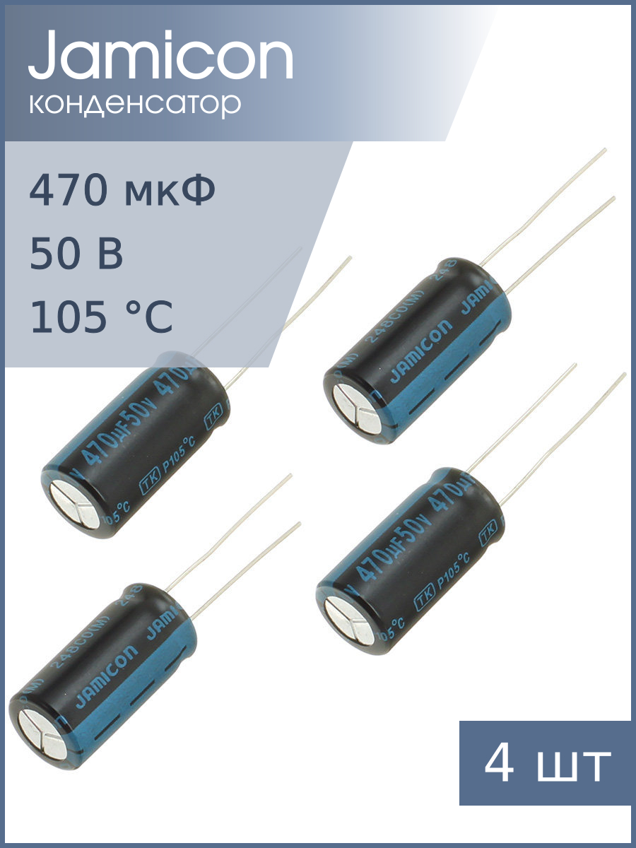 Конденсатор 470мкФ 50В 10*20мм 105С (упаковка 4шт) Jamicon JTK477M050S1GMH20L 660мА 2000час