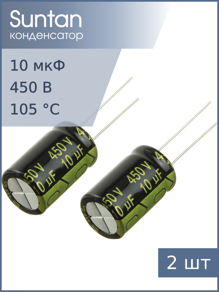 Конденсатор 10мкФ 450В 13*20мм 105С (упаковка 2шт) Suntan TS13D22W100MSB0B0R 330мА 8000час