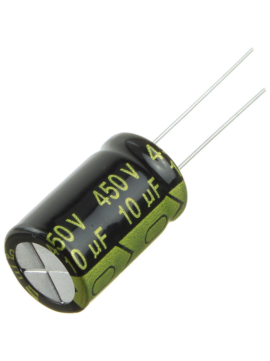 Тип Конденсатор алюминиевый электролитический радиальный 10мкФ 450В ±20% 13*20 P:5мм 330мА 8000ч 105°C