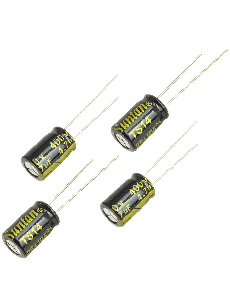 Конденсатор электролитический 4.7мкФ 400В, 8*12мм 105С, Suntan TS14012G4R7MSB040R 42мА 2000час (упаковка 4шт)