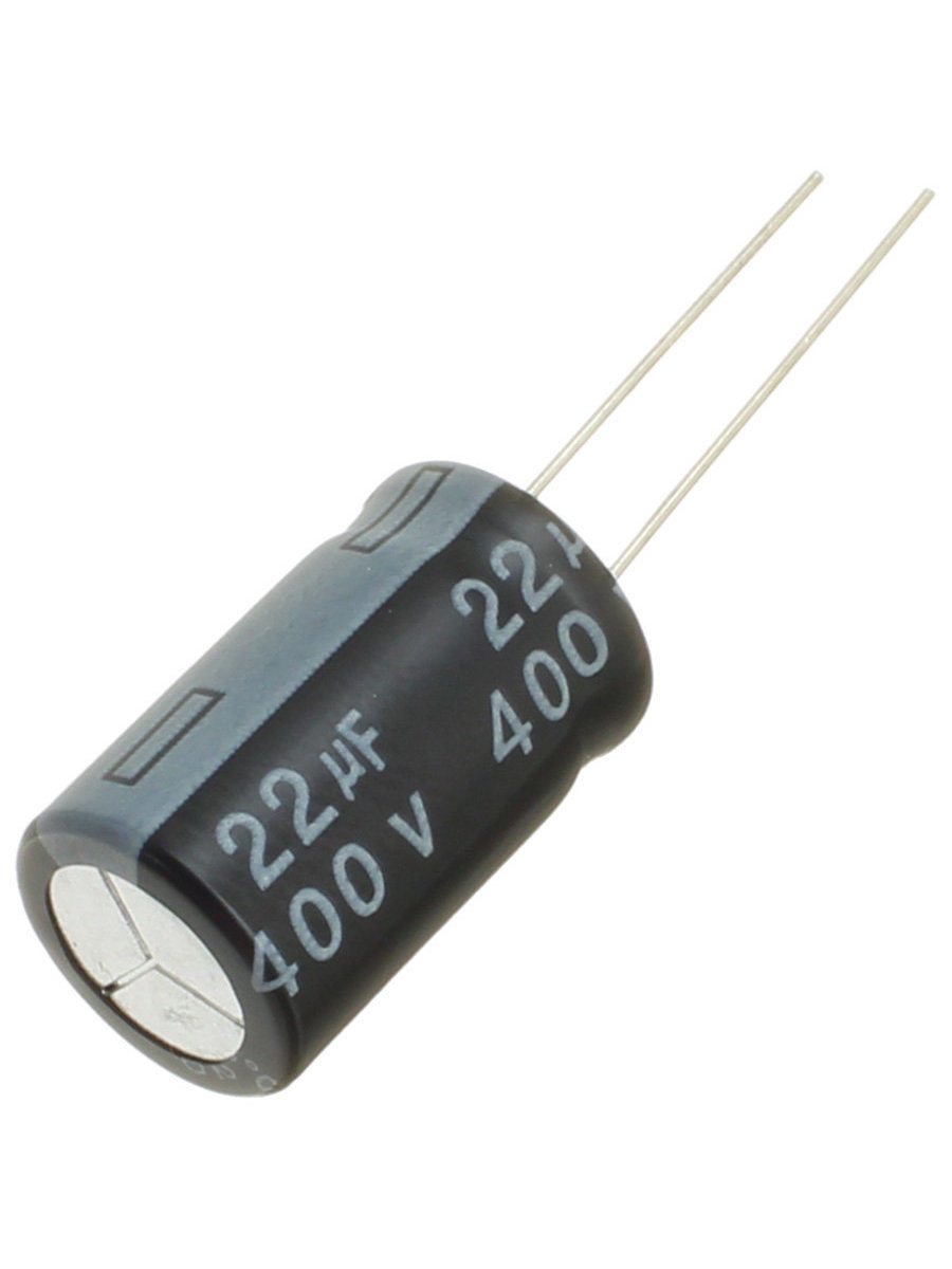 Тип Конденсатор алюминиевый электролитический 22мкФ 400В ±20% (13х20мм) радиальный 5мм 550мА 2000часов 105C россыпь