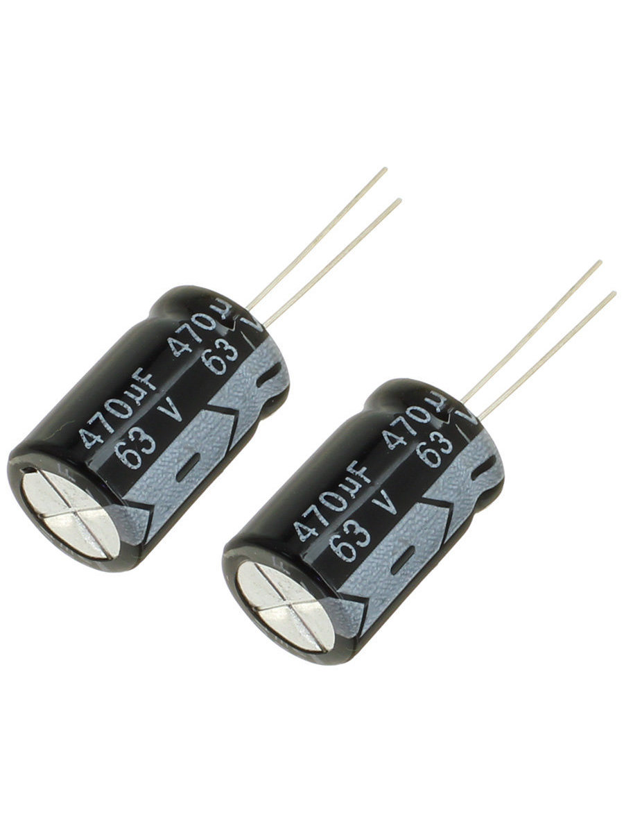 Cap Aluminum electrolytic 470uF 63V 20% (13 X 21mm) Radial 5mm 2000h 105C Bulk