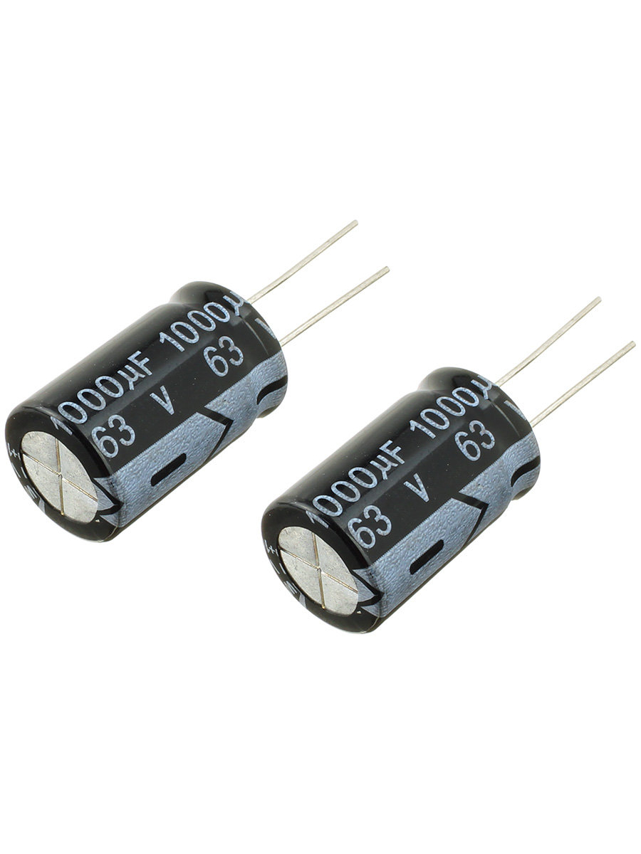 Тип Конденсатор алюминиевый электролитический 1000мкФ 63В ±20% (16 X 25мм) радиальный 7.5мм 2000час 105С россыпь