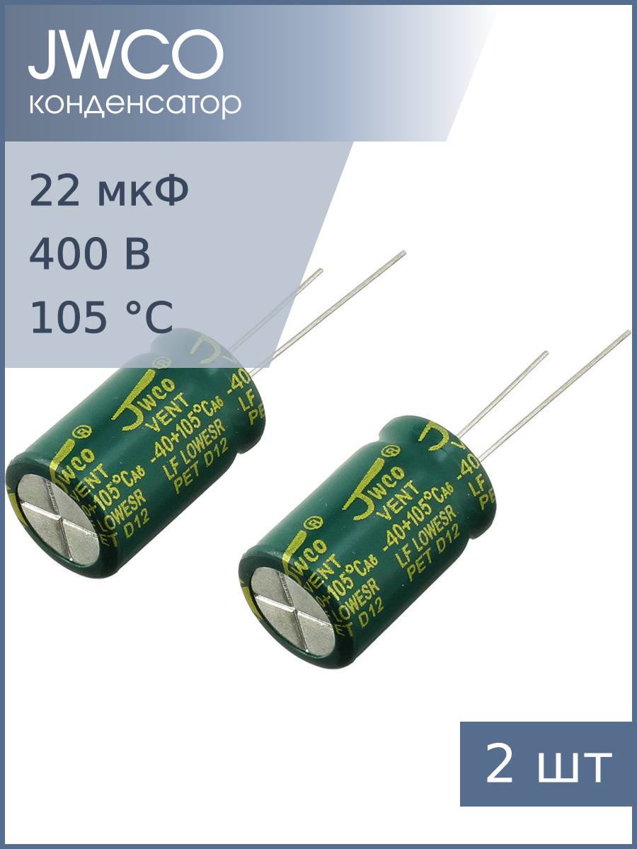 Конденсатор 22мкФ 400В 13*21мм 105С (упаковка 2шт) JWCO LF220M2GBKJ1321EGN 275мА 4000час