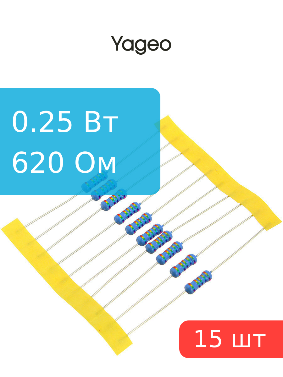 Резистор 620Ом 0.25Вт 5% Yageo MFR-25JT-52-620R (упаковка 15шт)