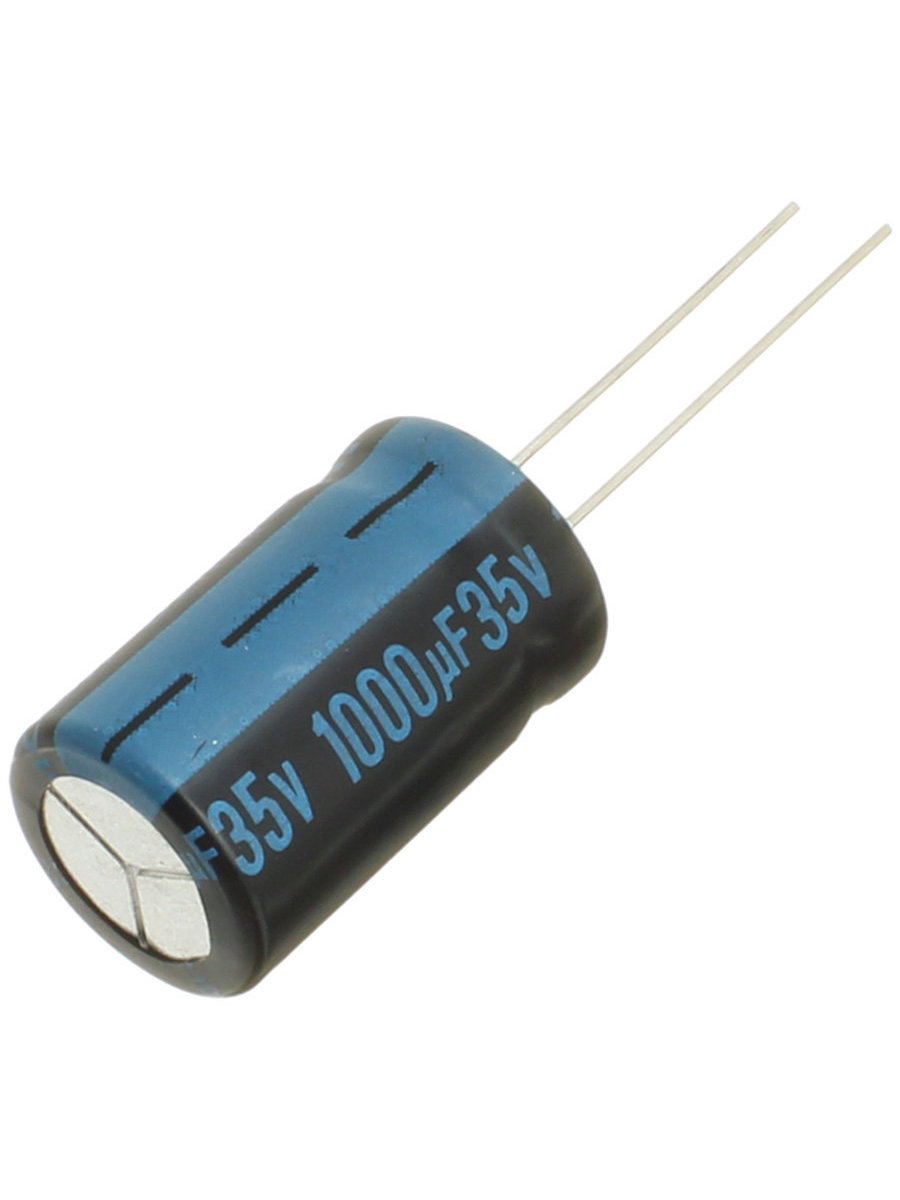 Тип Конденсатор алюминиевый электролитический 1000мкФ 35В ±20% (12.5 х 20мм) радиальные выводы 5мм 1000мА 2000час 105С россыпь
