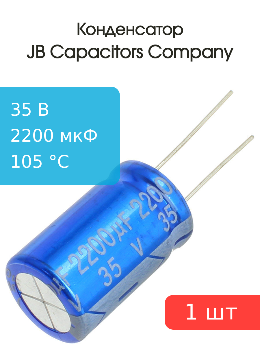 Конденсатор 2200мкФ 35В 16*26мм105С JB JRC1V222M075016002600000B 2820мА 2000час