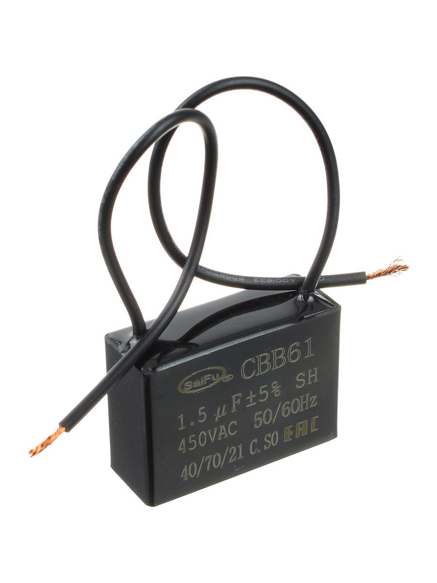 Пусковой конденсатор 1.5мкф 450В 5%, SaiFu CBB61 (выводы провод)