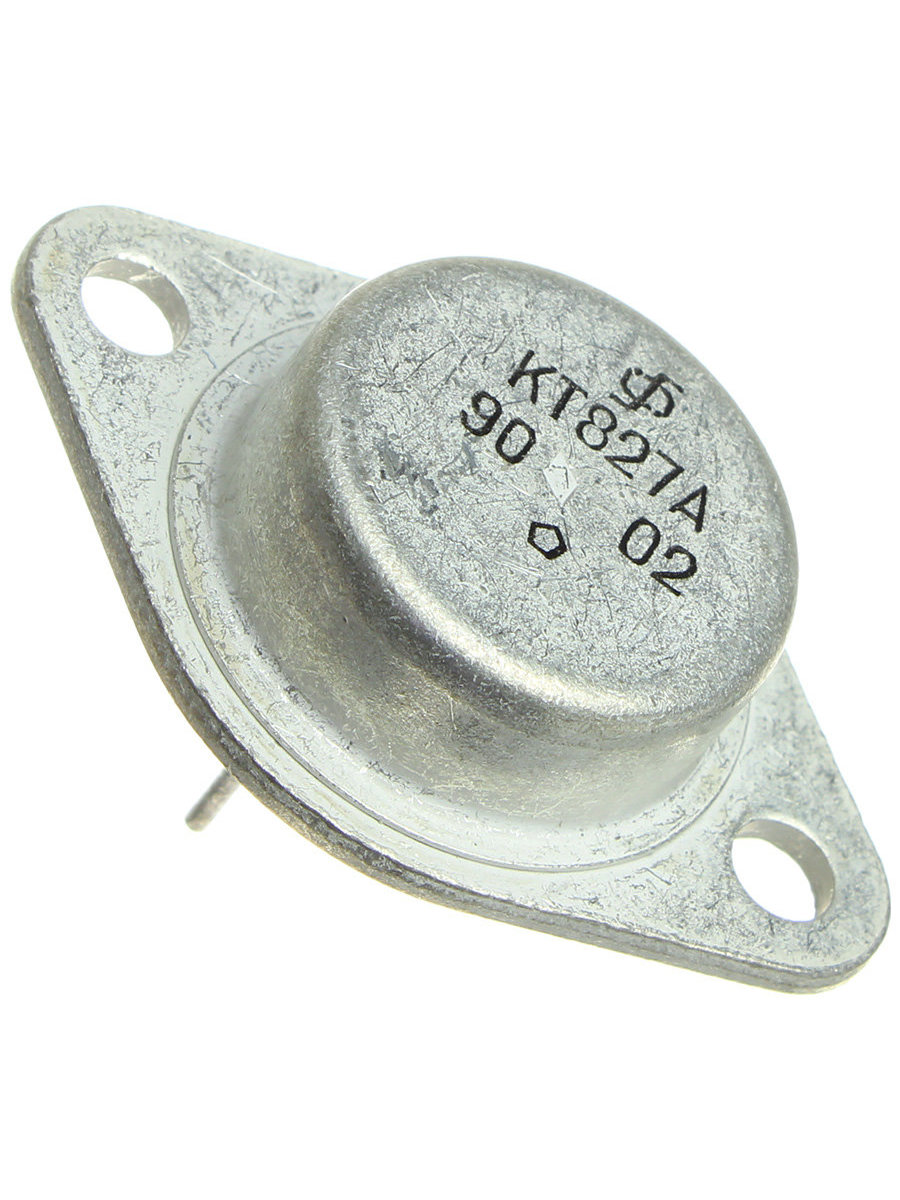Транзисторы КТ827А кремниевые эпитаксиальные мезапланарные составные структуры n-p-n усилительные. Предназначены для применения в усилителях низкой частоты, стабилизаторах тока и напряжения, импульсных усилителях мощности, повторителях, переключающих устройствах, электронных системах управления защиты и автоматики. Используются для работы в электронной аппаратуре общего назначения. Выпускаются в металлическом корпусе со стеклянными изоляторами и жёсткими выводами.