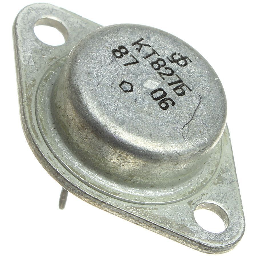 Транзисторы КТ827Б кремниевые эпитаксиальные мезапланарные составные структуры n-p-n усилительные. Предназначены для применения в усилителях низкой частоты, стабилизаторах тока и напряжения, импульсных усилителях мощности, повторителях, переключающих устройствах, электронных системах управления защиты и автоматики. Используются для работы в электронной аппаратуре общего назначения. Выпускаются в металлическом корпусе со стеклянными изоляторами и жёсткими выводами.