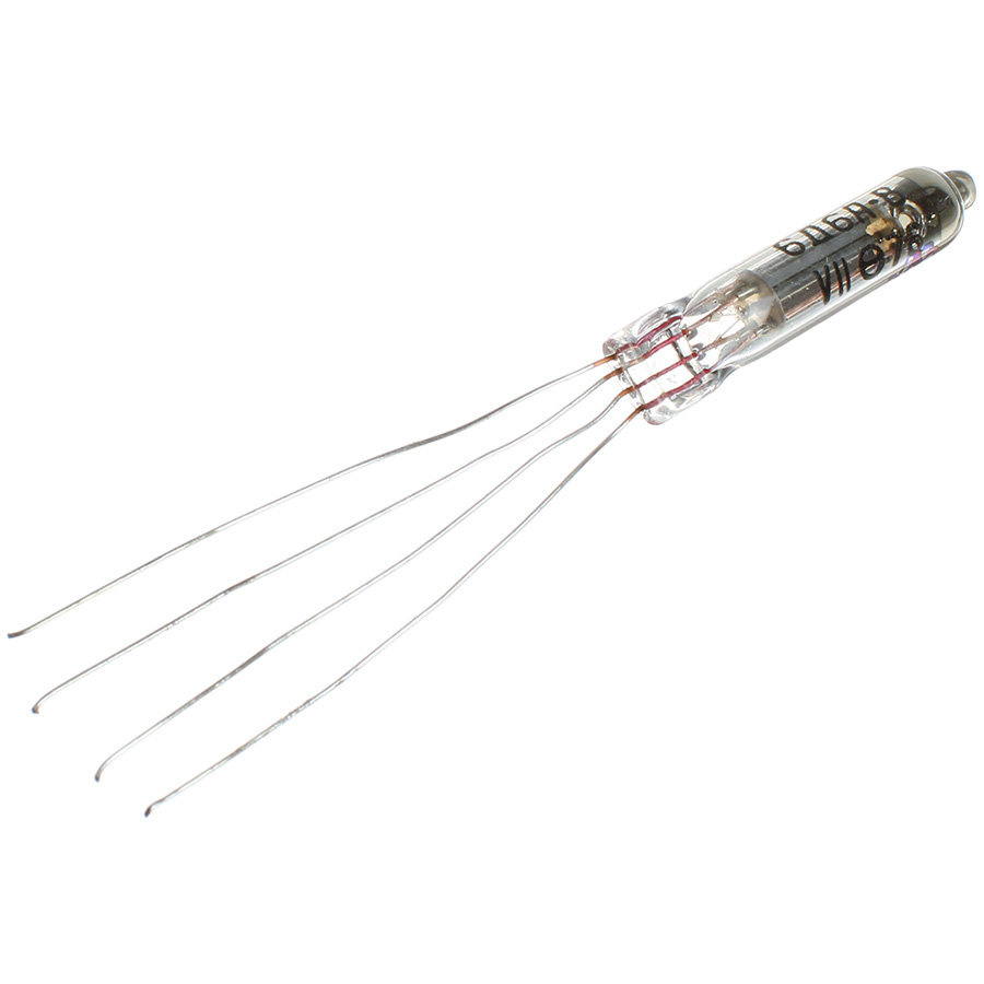 Катод оксидный косвенного накала. Работает в любом положении. Выпускается в стеклянном сверхминиатюрном оформлении.