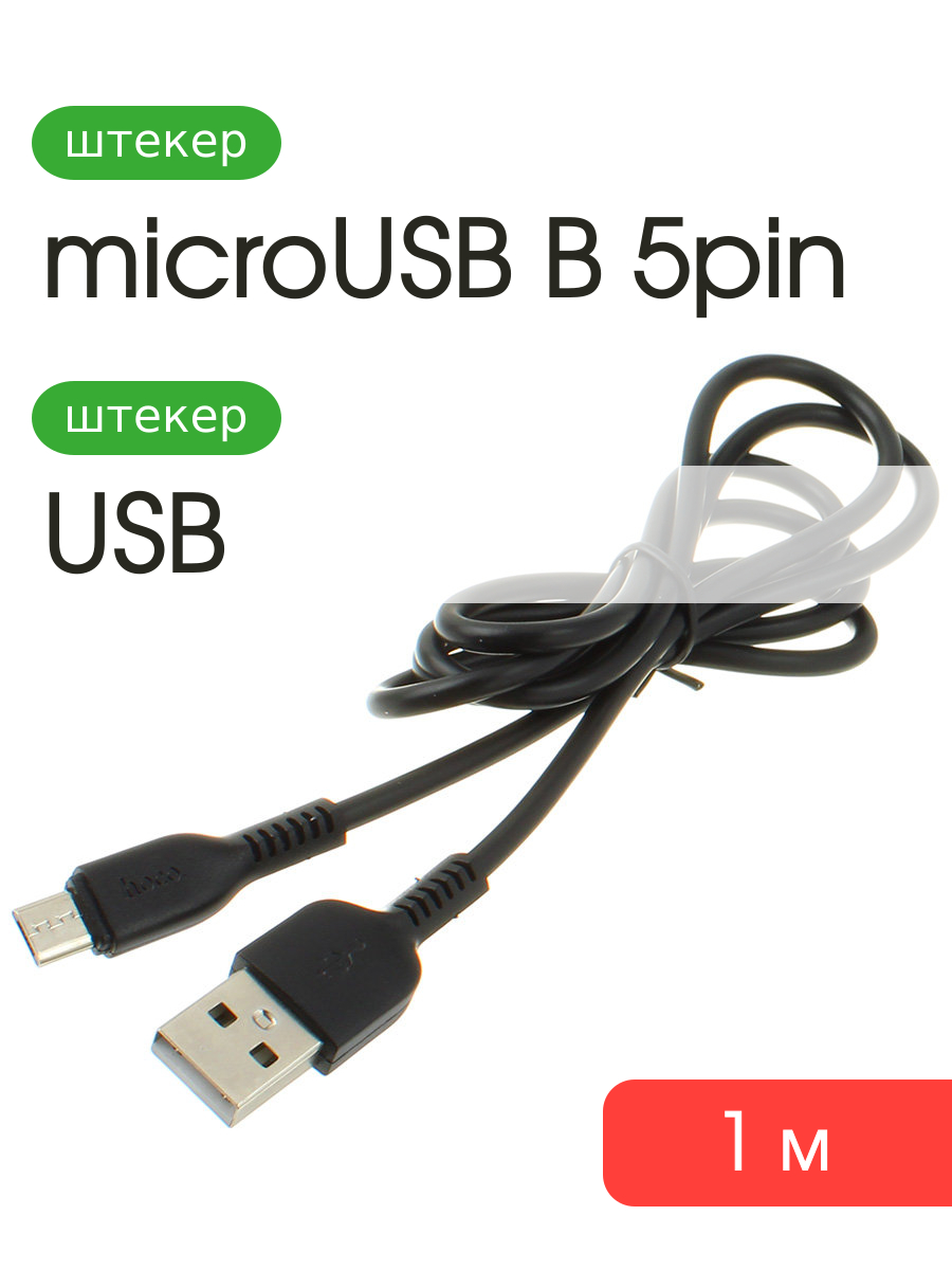 Шнур USB A-Micro-USB B (Android) 5PIN 1м Hoco X20 black