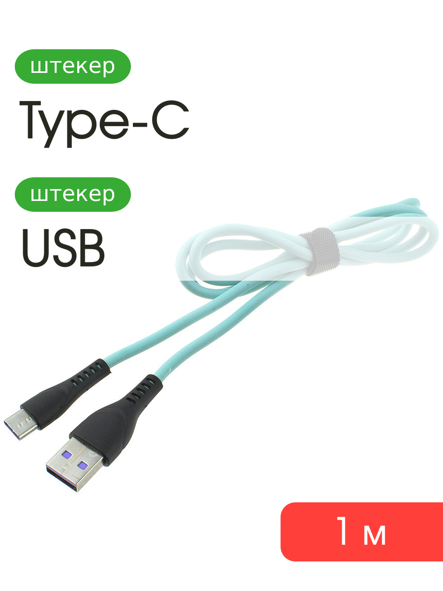 Шнур USB A-USB Type C 1м морозостойкий, 5А, мятный, быстрая зарядка