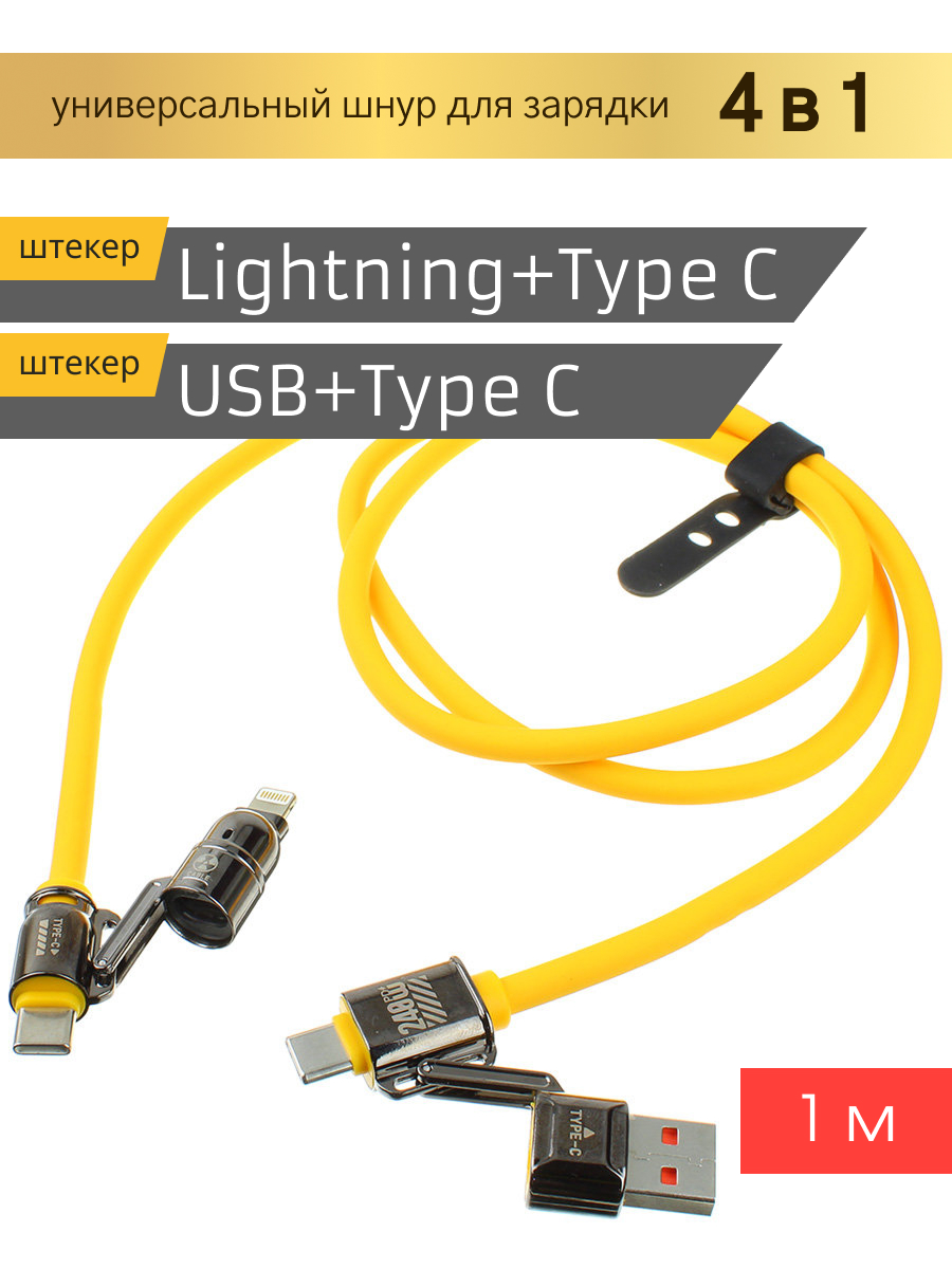 Шнур USB А-TypeC/совместимый с iPhone 5/Type C 240W 1м, желтый