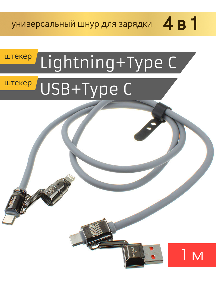 Шнур USB А-TypeC/совместимый с iPhone 5/Type C 240W 1м, серый