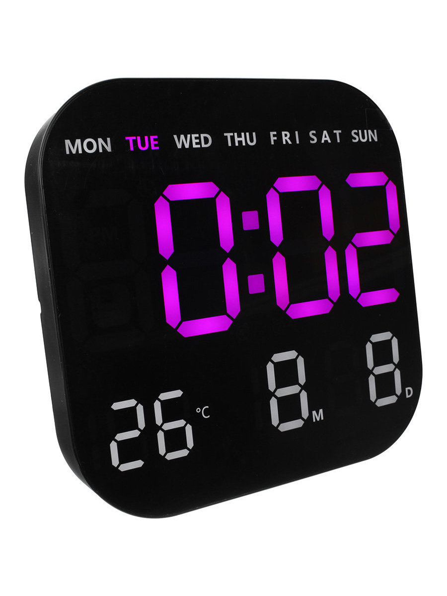 ЖК-дисплей с большим экраном, дата, неделя, температура, время и будильник отображаются на одном экране.