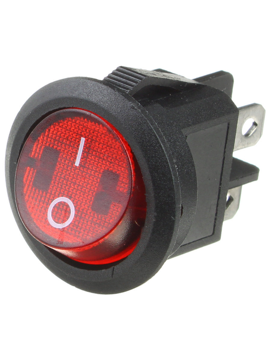 Выключатель клавишный ON-OFF с подсветкой цвет корпуса (черный) цвет кнопки (красный)