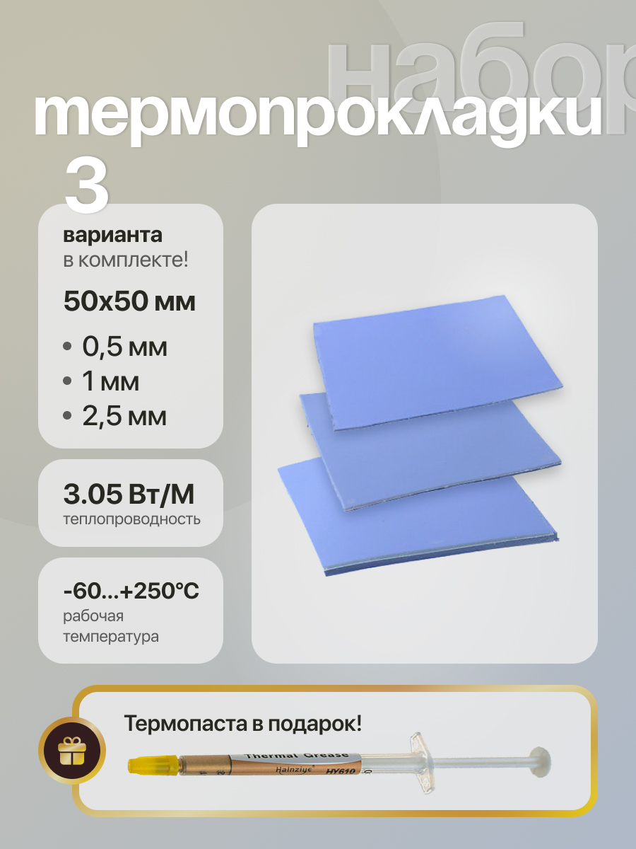Набор для видеокарты термопрокладки 3шт и термопаста 1 штука