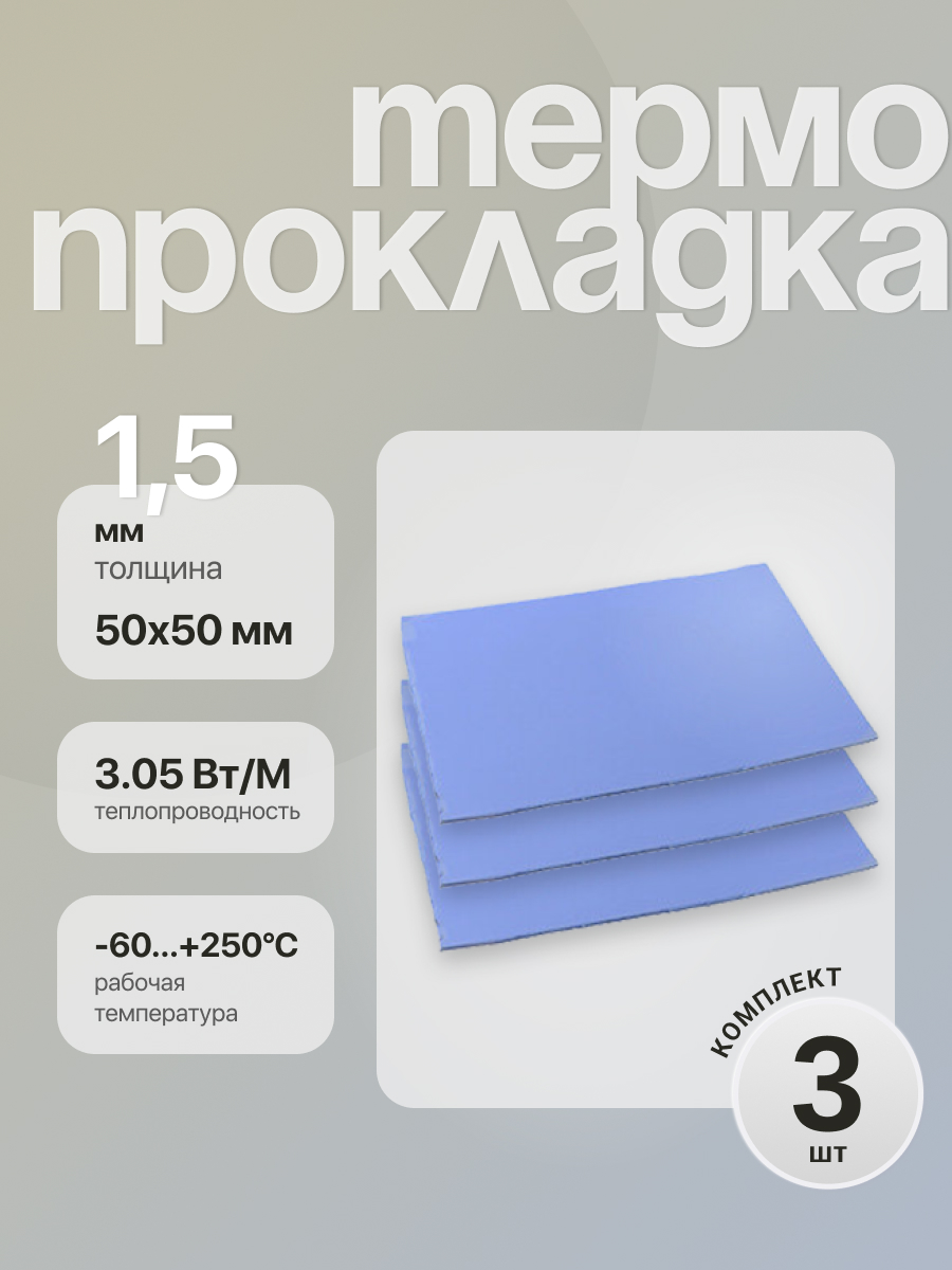 Термопрокладка 50*50*1.5 мм 3 штуки