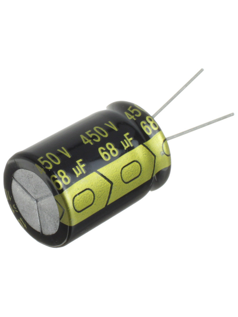 Cap Aluminum electrolytic 68uF 450V 20% (18 X 26mm) Radial 7.5mm 320mA 2000h 105C Bulk