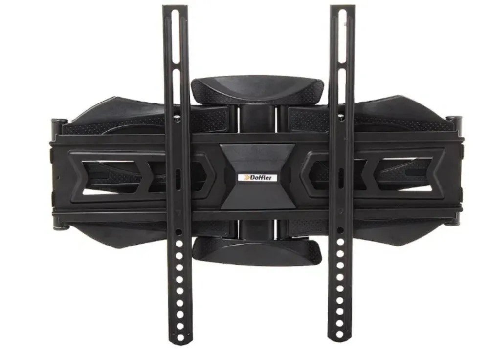 Наклонно-поворотный кронштейн Doffler предназначен для настенного крепления телевизоров с диагональю до 60 дюймов. Его надежная стальная конструкция способна выдерживать нагрузку до 30 кг. Одним из главных преимуществ данной модели является минимальное расстояние от стены, составляющее всего 54 мм. Благодаря наличию необходимых крепежей в комплекте установка не займет у вас много времени.