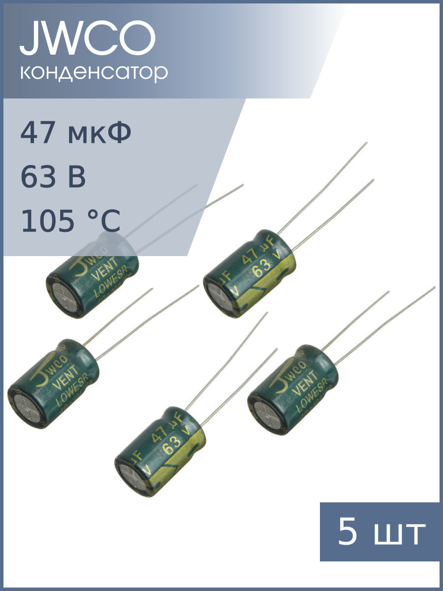 Конденсатор 47мкФ 63В 8*12мм 105С (упаковка 5шт) Jwco LF470M1JBKJ0812VBK 285мА 4000час