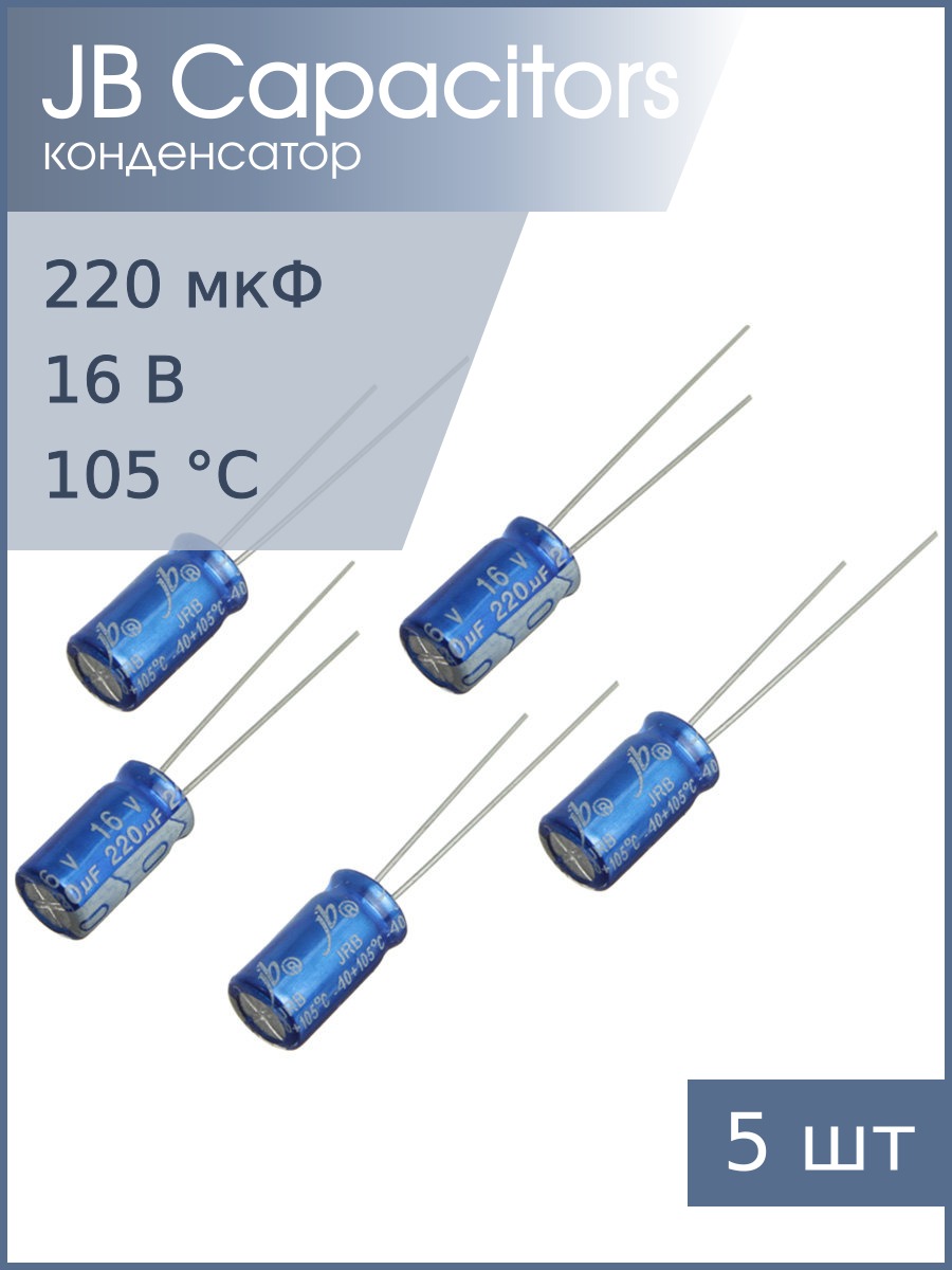 | Комплектация | Конденсатор JB JRC1C221M02500630110000B 5шт |
