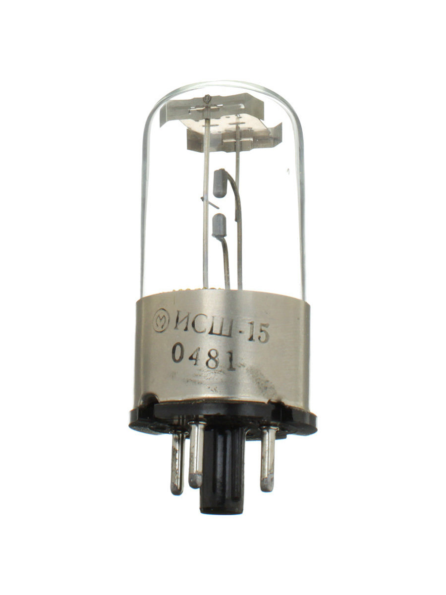 Строботрон ИСШ-15 импульсный маломощный газоразрядный в баллоне из увиолевого стекла с цоколем, в шаровом оформлении мощностью 15 Вт.
