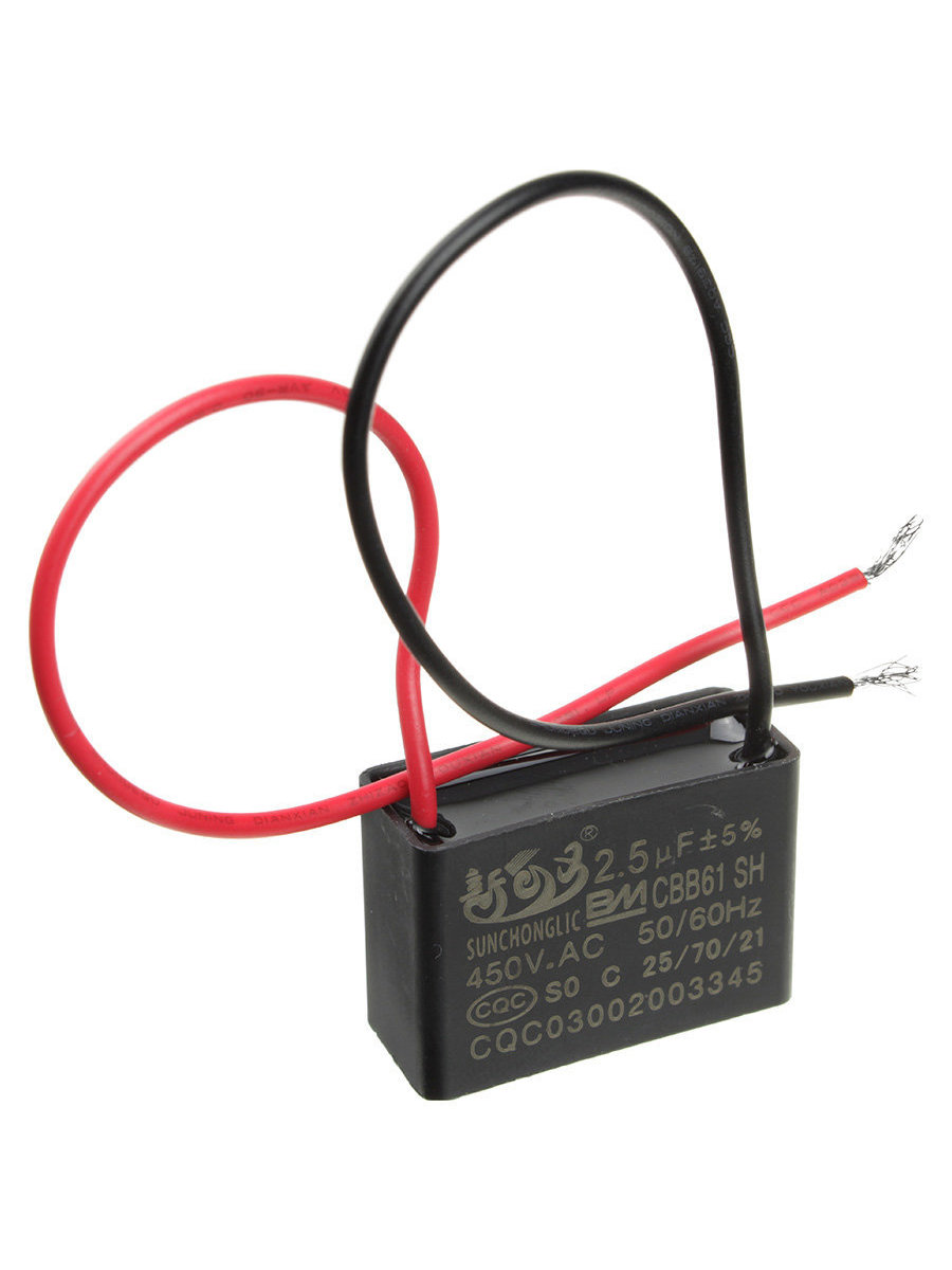Конденсатор пусковой 2.5мкФ 450В 5% CBB-61 выводы провод