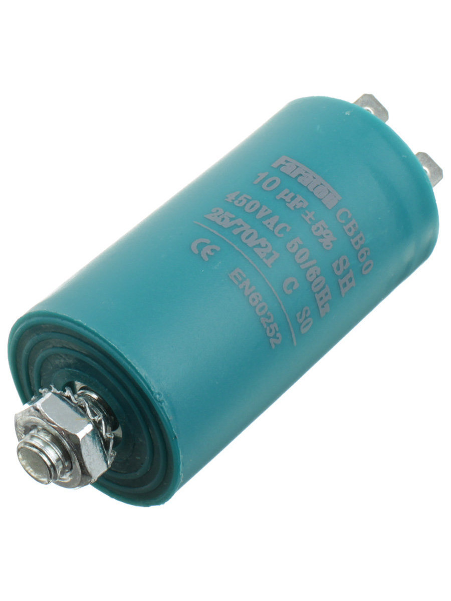 Конденсатор пусковой 10мкФ 450В 5% клеммы, болт, d34 L66 Faraton