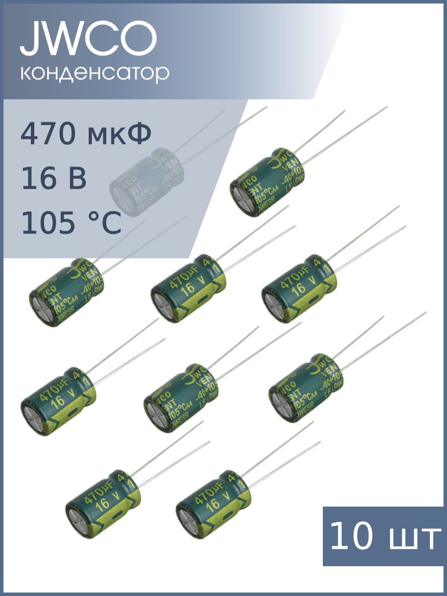 Конденсатор 470мкФ 16В 8*12мм 105С (упаковка 10шт) JWCO LF471M1CBKJ0812EGN 765мА 4000час