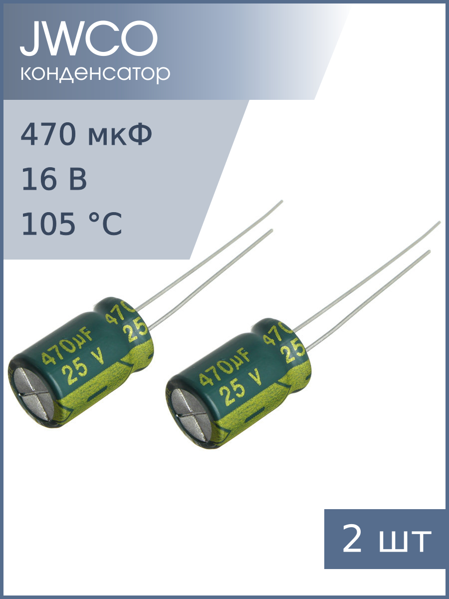 Конденсатор 470мкФ 25В 8*12мм 105С (упаковка 2шт) JWCO LF471M1EBKJ0812EGN 810мА 4000час