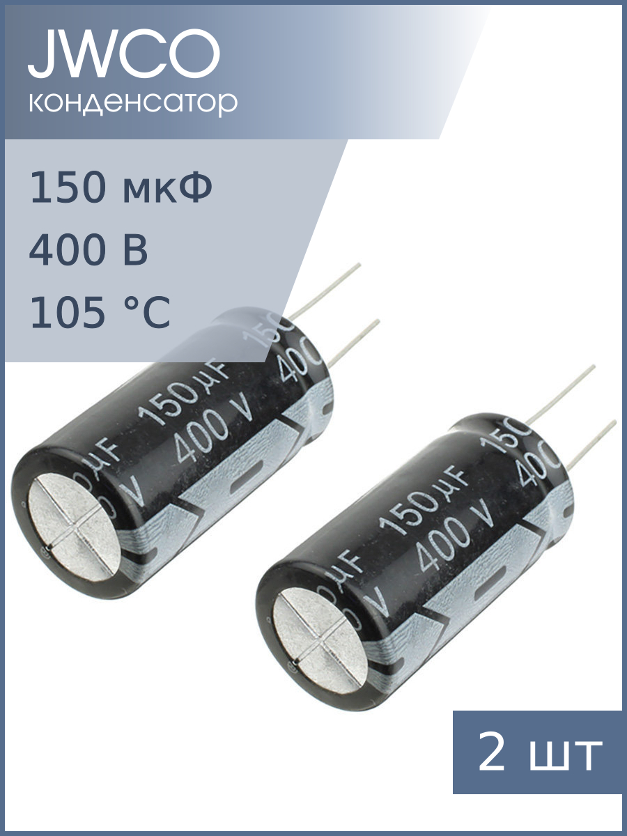 Конденсатор 150мкФ 400В 18*35мм 105С (упаковка 2шт) Jwco KM151M2GBKJ1835EBK 550мА 2000час