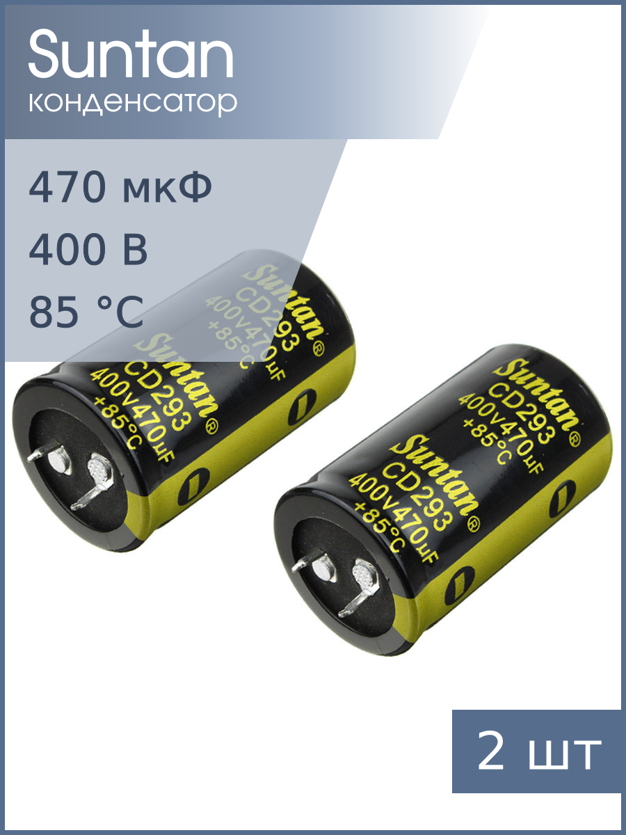 Конденсатор 470мкФ 400В 30*50мм 85С (упаковка 2шт) Suntan TS13DP2G471MSB0D0R Snap-in 2100мА 2000час