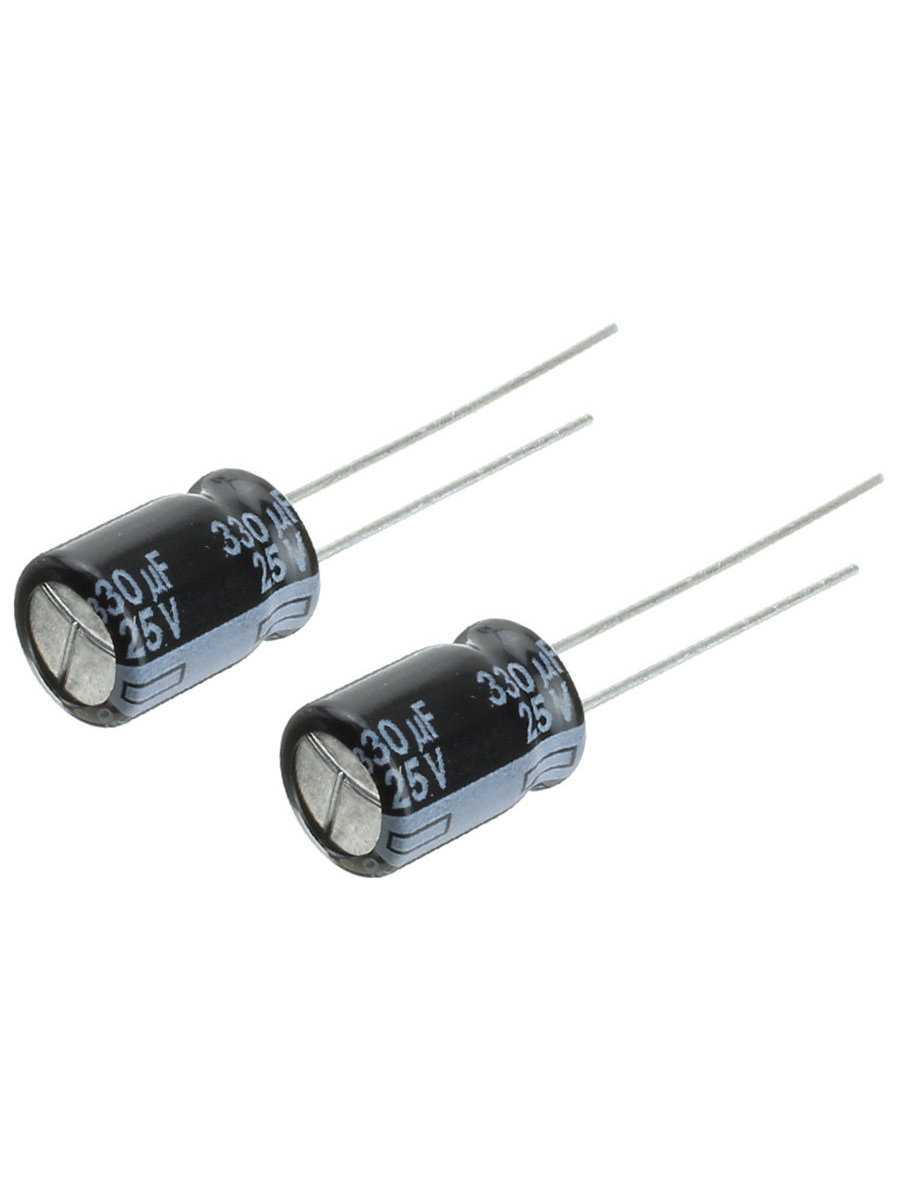 Тип Конденсатор алюминиевый электролитический 330мкФ 25В 20% (8 X 11.5мм) радиальные выводы 3.5мм 950мА 6000час 105С Россыпь