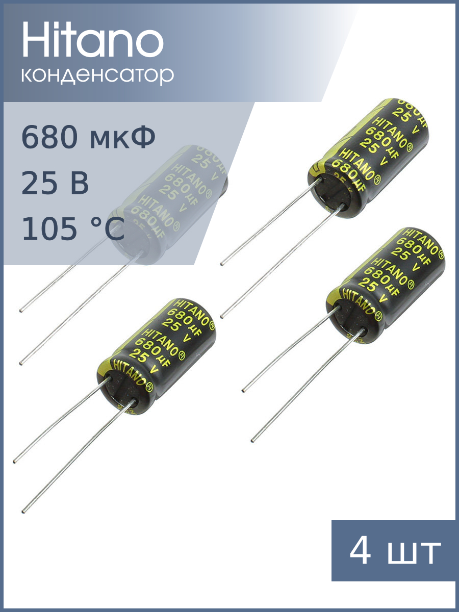 | Комплектация | Конденсатор Hitano EXR681M25B 4шт |