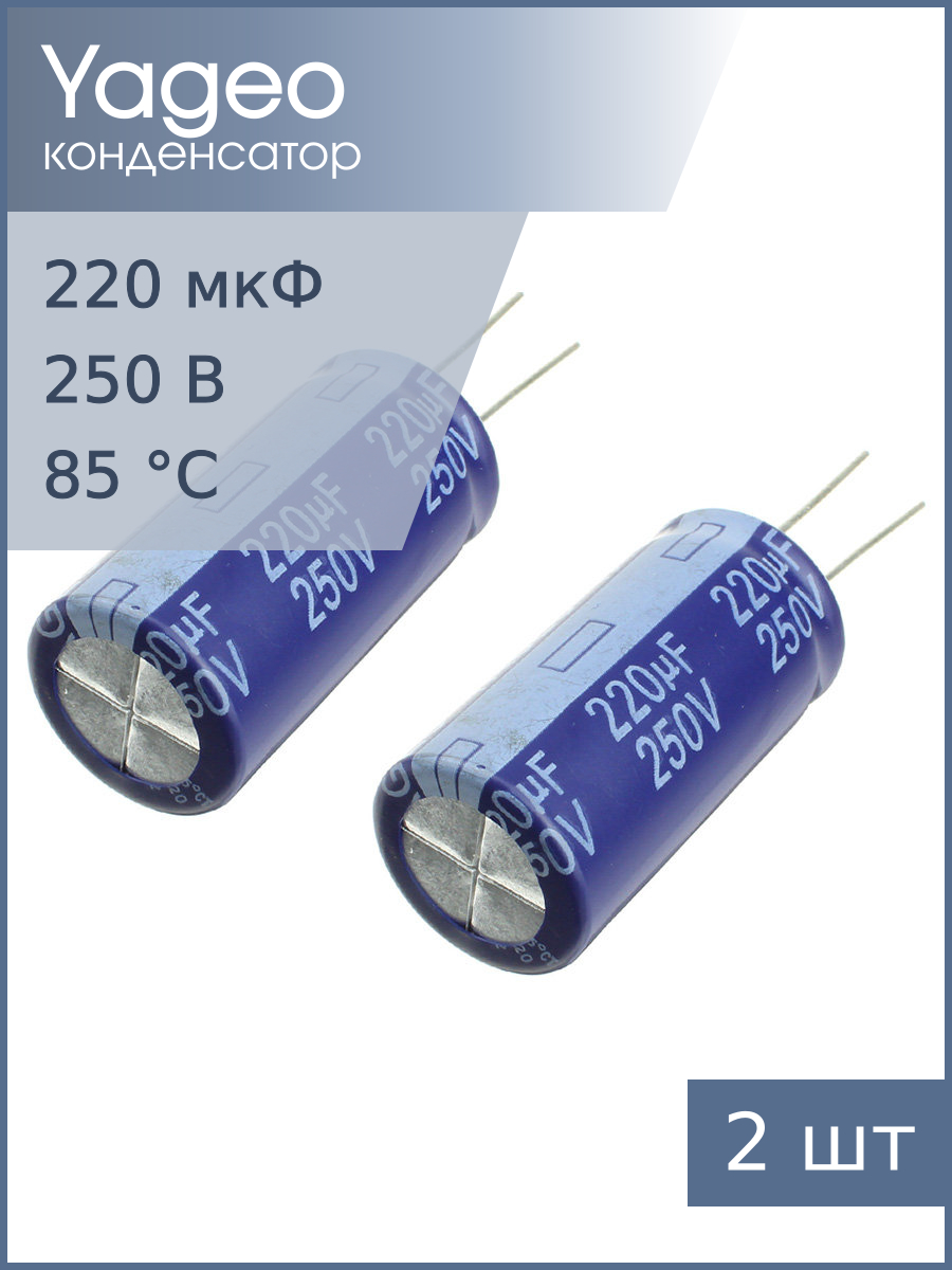 | Комплектация | Конденсатор Yageo SK250M0220B7F-1836 2шт |