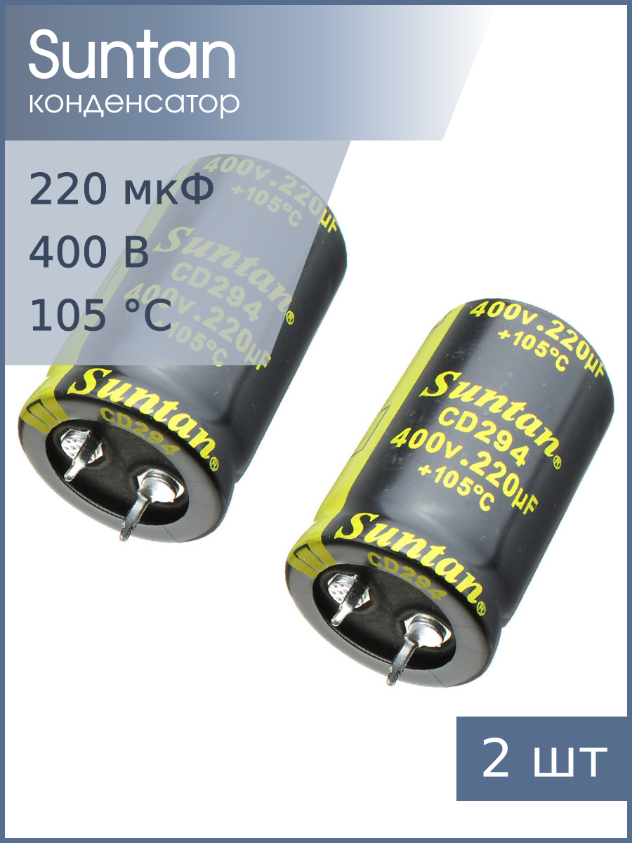 Конденсатор электролитический 220мкФ 400В, 25*40, 105C, Suntan TS13DR2G221MSB0D0R Snap-in, 1000мА 2000час (упаковка 2шт)