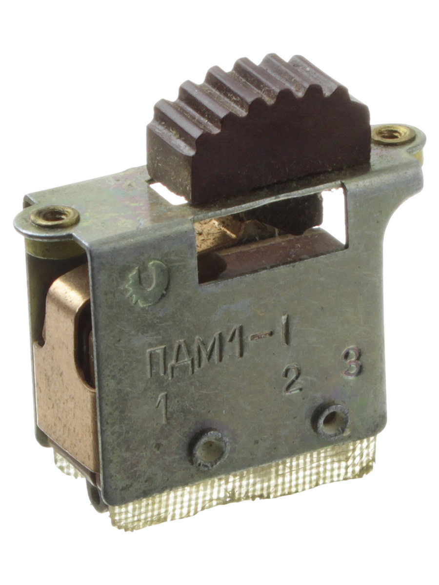 Переключатели ПДМ1-1 движковые однополюсные малогабаритные для объёмного монтажа. Предназначены для коммутации электрических цепей постоянного и переменного тока при напряжении не более 250 В и силе тока до 4,0 А. Используются для работы в качестве переключателей в радиоэлектронной аппаратуре общего и специального назначения.