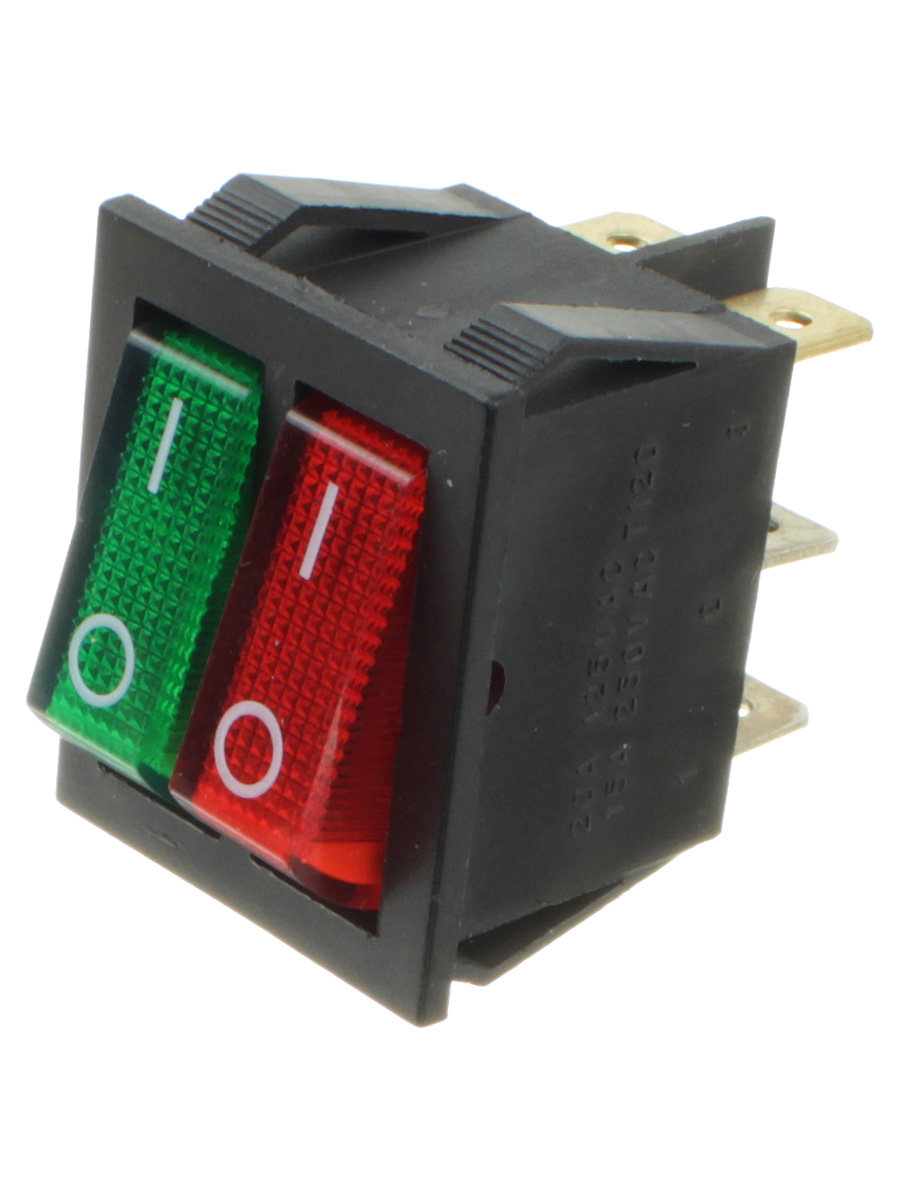 Выключатель 25*30мм Jie SWR2101-1A3 G+R/B IRS 2х клавишный красный-зеленый 6 контактов