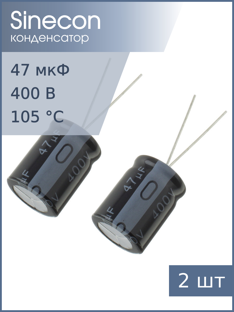 Конденсатор 47мкФ 400В 16*20мм 105С (упаковка 2шт) Sinecon ROH470K2G16201V7AZSZ00 390мА 2000час