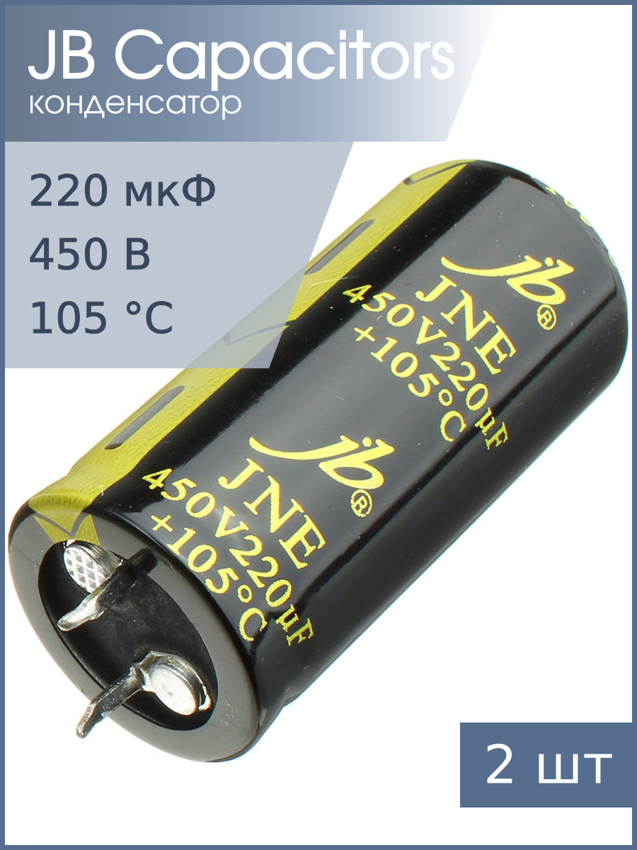 Конденсатор 220мкФ 450В 22*45мм 105C (упаковка 2шт) JB JNE2W221M10002200450 Snap-in 3150мА 2000час
