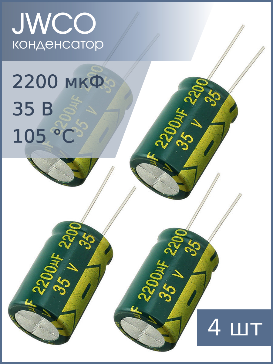 Конденсатор 2200мкФ 35В 16*25мм 105С (упаковка 4шт) JWCO LF222M1VBKJ1625EGN 2150мА 4000час