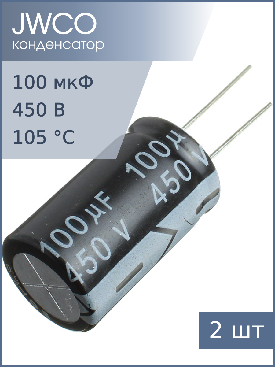 Конденсатор 100мкФ 450В 18*30мм 105C JWCO KM101M2WBKJ1830VBK 455мА 2000час (упаковка 2шт)