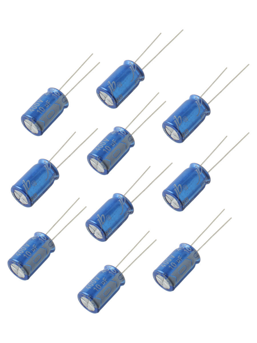 Тип конденсатора: Конденсатор электролитический алюминиевый 10мкФ 400В ±20% (10х16)мм радиальный, шаг 5мм 105мА 2000час 105°C россыпь