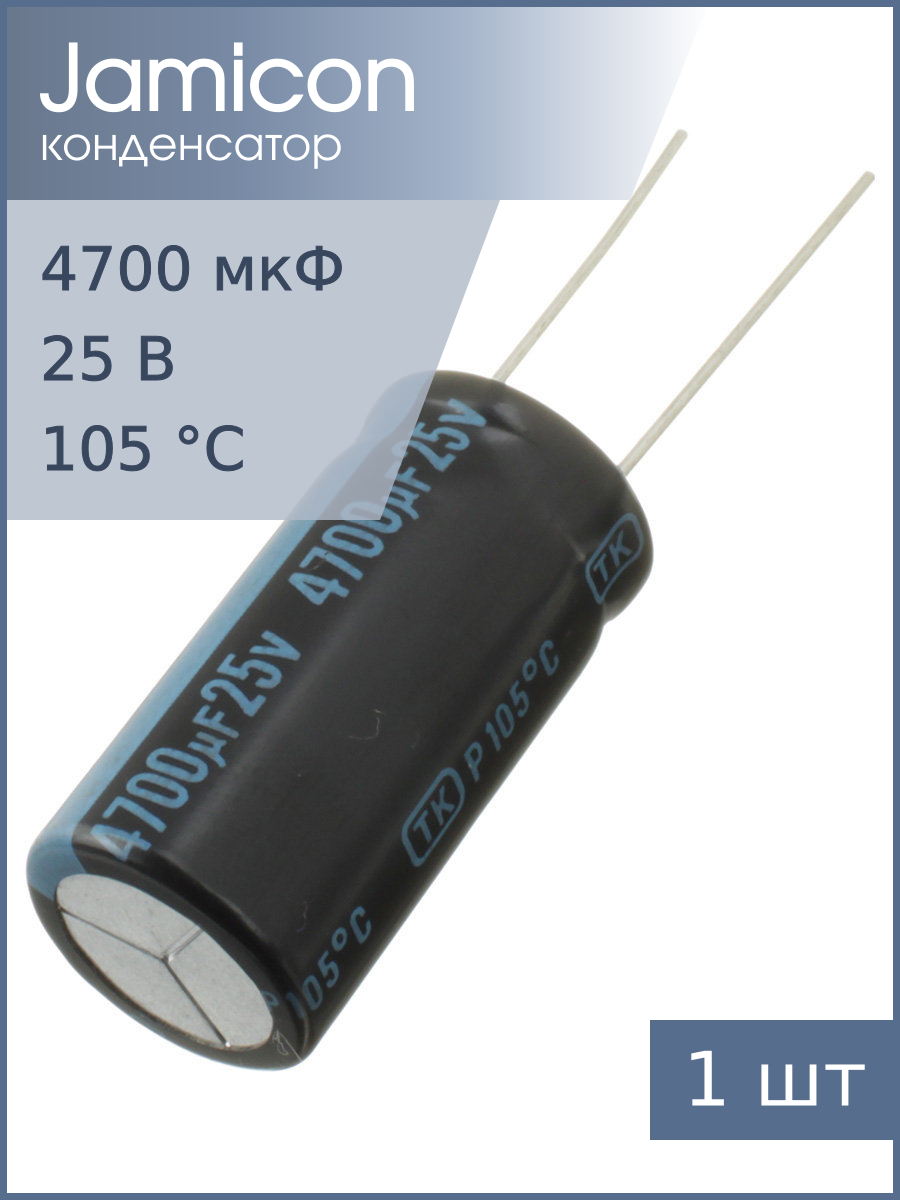 | Комплектация | Конденсатор Jamicon JTK478M025S1GMM32L 1шт |