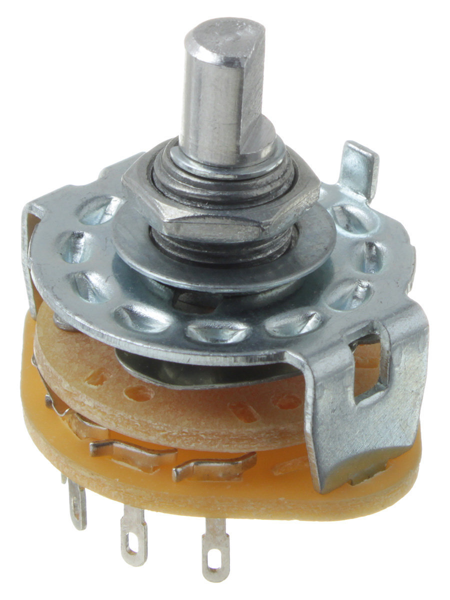 Переключатель галетный 5 положений ручки, 1 группа замыкающих контактов, вал 6мм с лыской