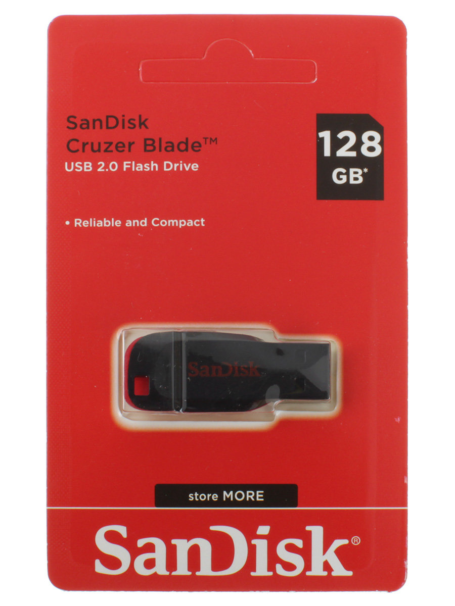 Флешка 128GB USB2.0 SanDisk Cruzer Blade, черная